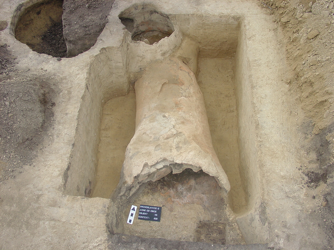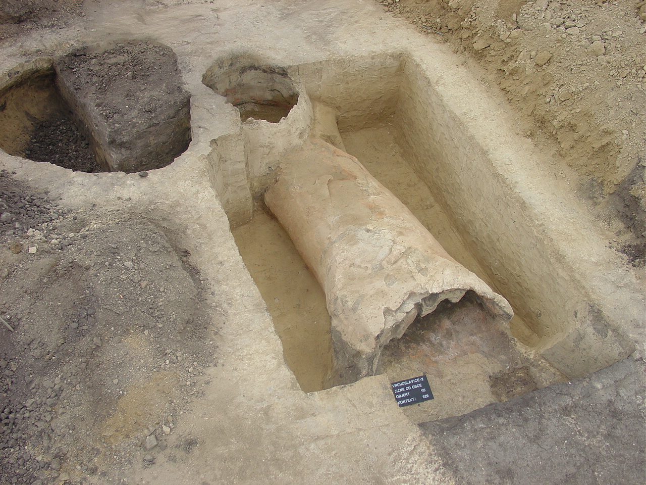 Unikátní nález římské jednokomorové pece v lokalitě Vrchoslavice 2, v trati Panský lán, spolu s objekty sídlištního charakteru, torzem stavby nadzemní kůlové konstrukce, 7 půdorysy zahloubených chat atd.
