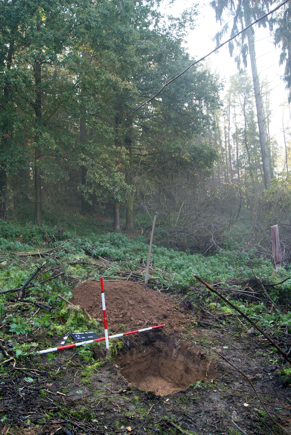 V místech dvou plánovaných mapovacích geologických vrtů, které bude provádět společnost KAMENOLOMY ČR s.r.o., byly položeny dvě malé sondy, vždy o rozměru 1x1 m. V obou sondách se pod lesní hrabankou nacházela kompaktní žlutá spraš. Pouze v sondě 2 byly v této uloženině nalezeny 3 eneolitické keramické zlomky.