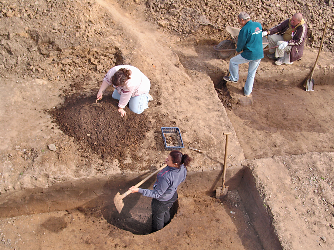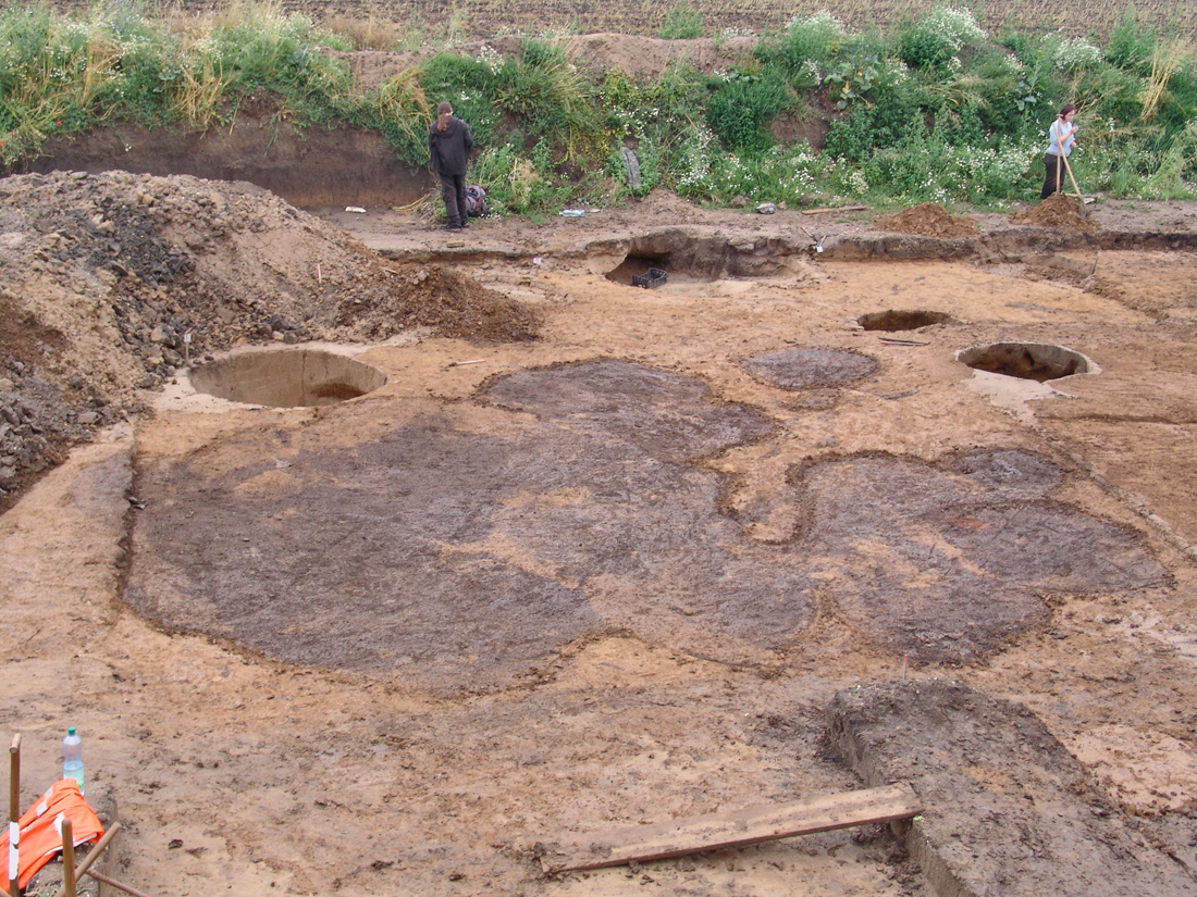 Nejdříve zkoumali pracovníci AC Olomouc kulturní vrstvu pomocí snižování čtvercových sond (obr. 1, 2). Celkově pokryly 1120 m² plochy. Mocnost kulturní vrstvy nebyla velká (většinou 0,2 m), protože byla již dříve snížena průběhem historické komunikace (obr. 3). Již ve vrstvě byly znatelné archeologické objekty. Prozkoumali jsme 139 objektů, čímž se počet na lokalitě zvýšil na 1090. V jejich spektru převažovaly zásobní jámy. Méně jsme se setkali s mělkými objekty, hliníky a kůlovými jamkami (obr. 1, 7, 8). Ve výplni převažovaly keramické zlomky, mazanice, zvířecí kosti a nástroje z nich vyrobené a ojedinělé drobné bronzové předměty denního užitku.
