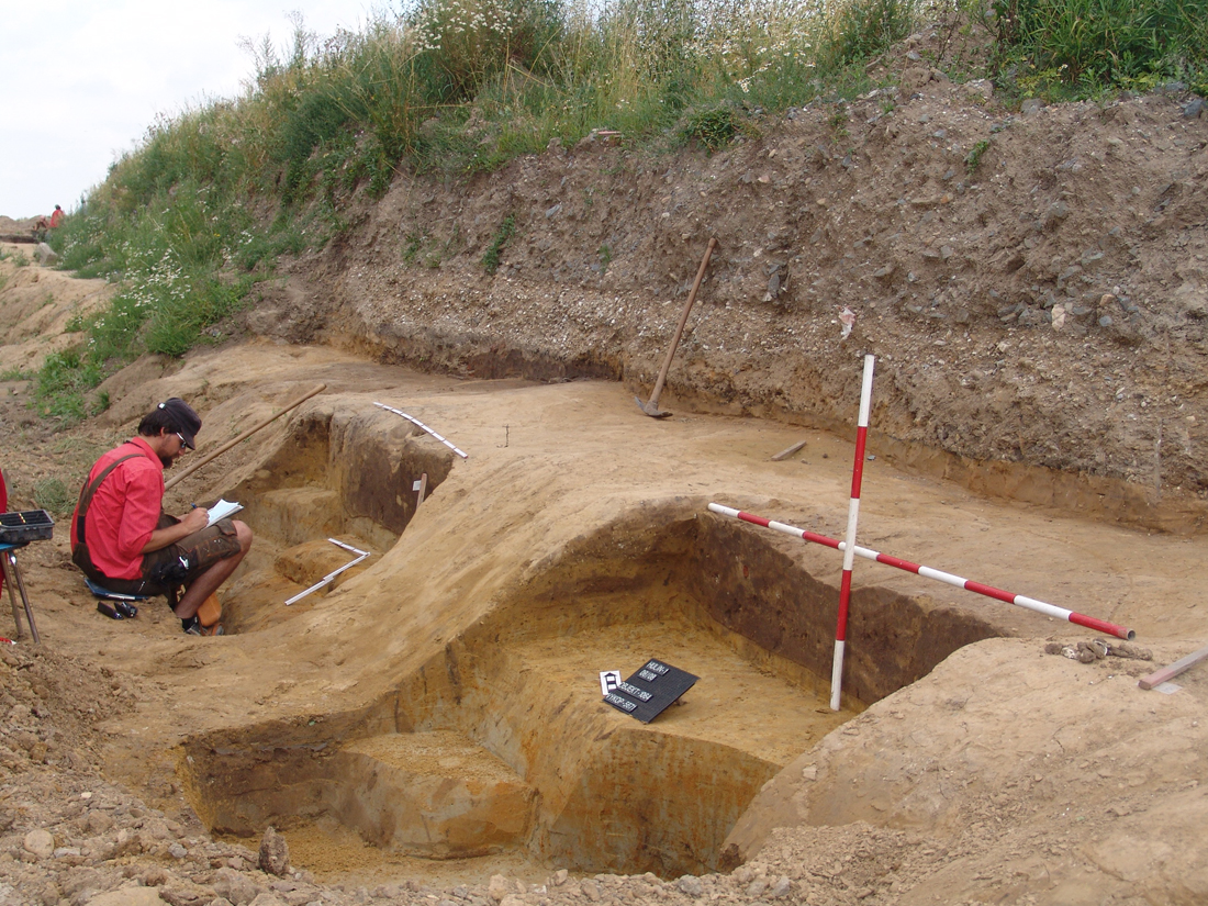 V minulých stoletích přes zkoumanou polohu s pravěkými lokalitami vedly cesty, které vyhloubily hluboký úvoz směřující k potoku a přes něj k Hulínu. Následně byla tato deprese zaplněna až 2,5 m navážek (obr. 3).