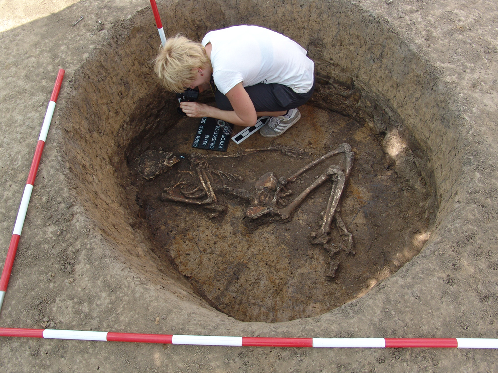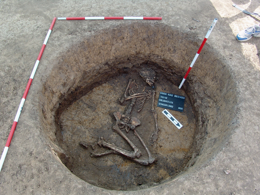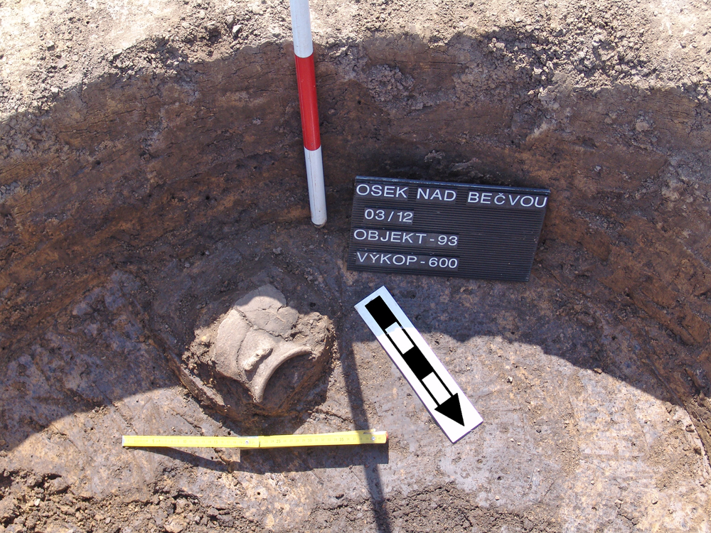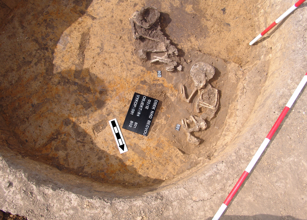 V blízkosti objektů s pohřby byly v menších jamách odkryty také rozbité zrnotěrky a roztírače obilí.