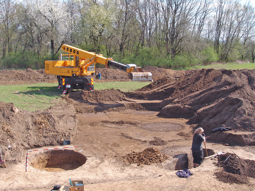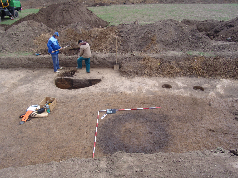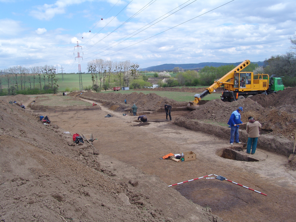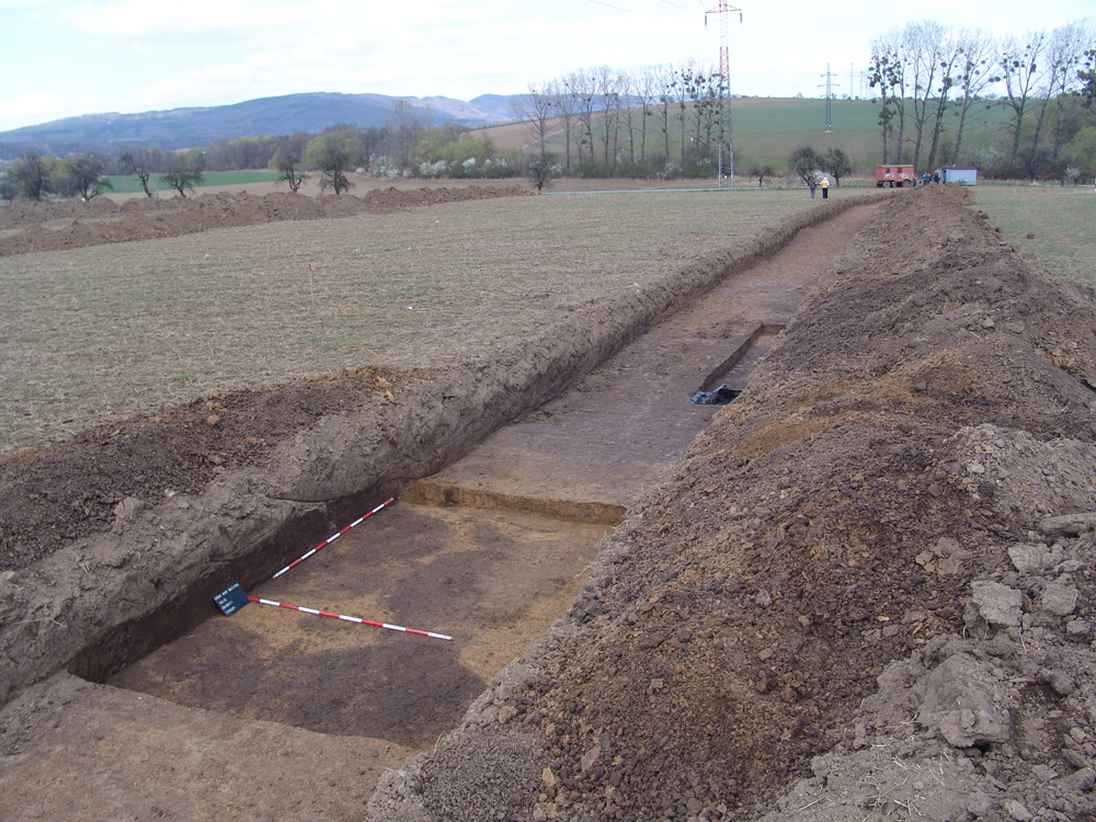 Práce na lokalitě byly započaty v polovině dubna 2012. Během skrývky plochy výzkumu se podařilo objevit asi 100 archeologických objektů různé velikosti a tvarů.