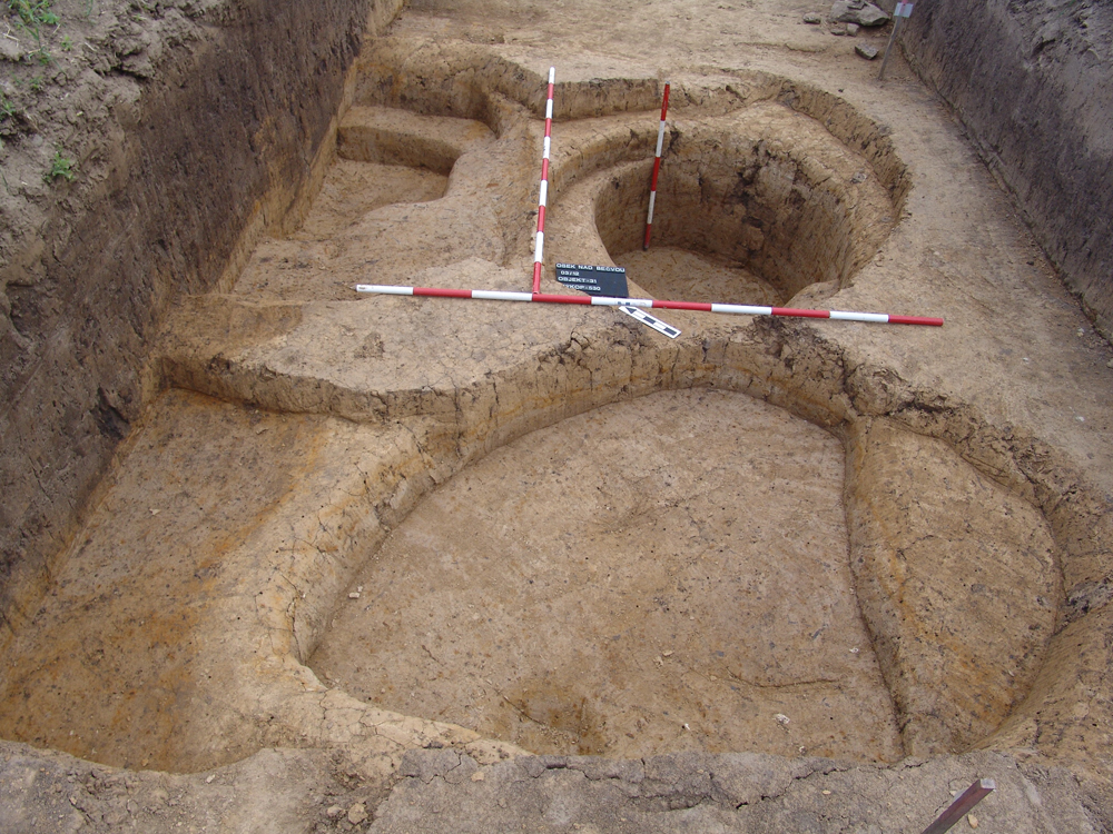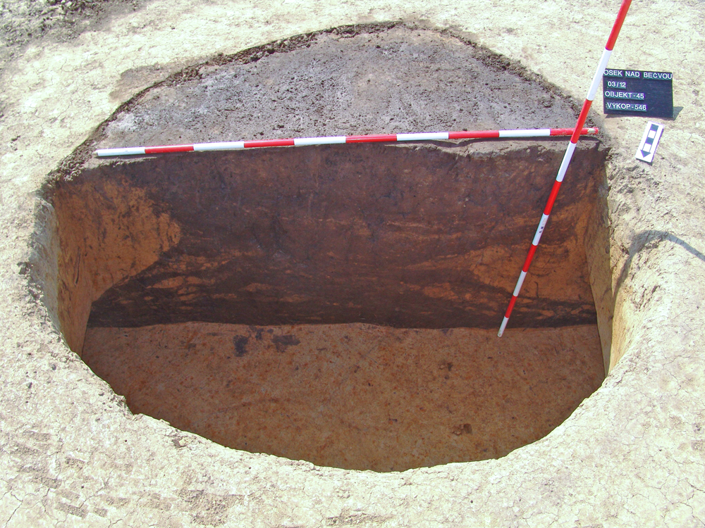 kruhové jámy větších rozměrů o průměrech cca 2,0 až 3,0 metry a o hloubce od 1,5 m. Jámy mají většinou trapezovitý či vakovitý tvar profilu a jsou vyplněny humózní hlínou - často promíchanou s písčitě sprašovým podložím. Největší počet těchto objektů byl odkryt v centrální části zkoumané plochy, pod západním směrem se zvedajícího svahu kopce.