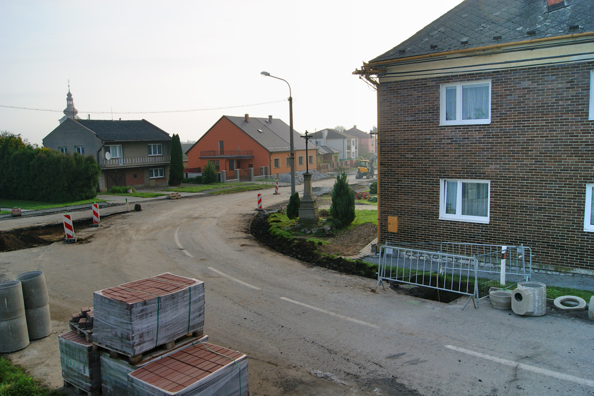 V současné době probíhá rekonstrukce silnice v jižní části obce Hněvotín. V jednom z hlubších výkopů, který bylo potřeba vybagrovat pro přípojku kanalizace u domu č.p.225, se podařilo zachytit zahloubený archeologický objekt. Ve stěnách jámy bylo možné rozeznat velké množství kostí. Bližší ohledání umožnilo rozpoznat kostry nejméně tří koní. Přestože se jednalo o velmi omezený výkop, můžeme předpokládat, že kostry jsou kompletní. Zahloubení objektu dosahovalo 2 metrů pod současnou komunikací. Z výplně byly získány pouze 4 střepy, které umožňují datovat celou situaci do rámce 17.-19. století.