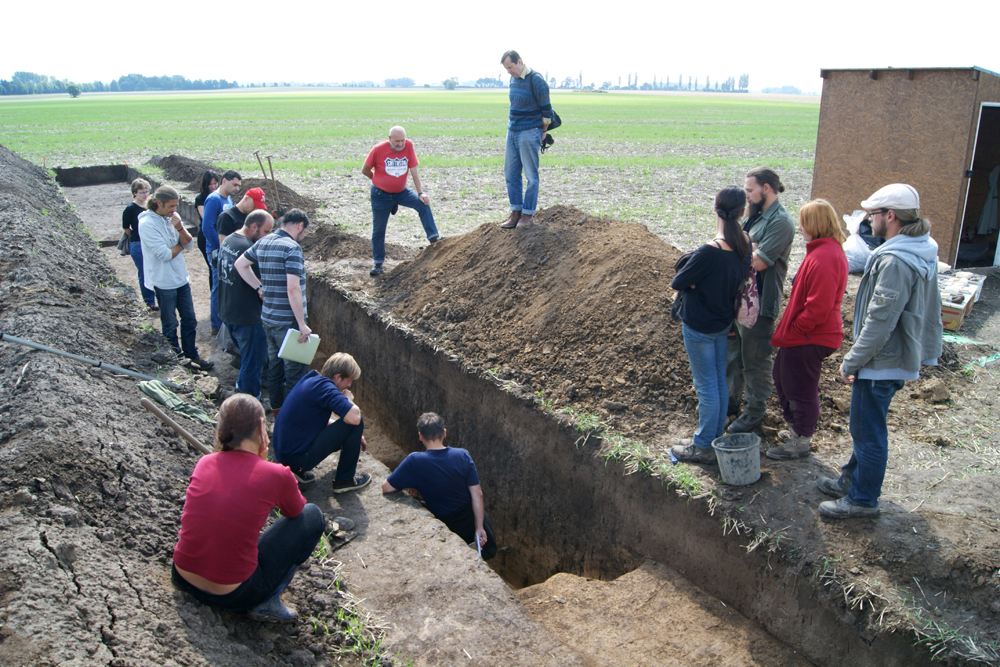 Letošní sondáž předcházela opět letecká prospekce a především celkový magnetometrický průzkum lokality, při němž byl odhalen celkový půdorys ohrazení s příkopem a dvěma palisádami, které jsou v jednom místě přerušeny vstupem. Příkop vymezuje oválnou plochu o rozměrech 180 x 150 m. Uvnitř i vně ohrazení se nachází množství objektů (polykulturní lokalita).