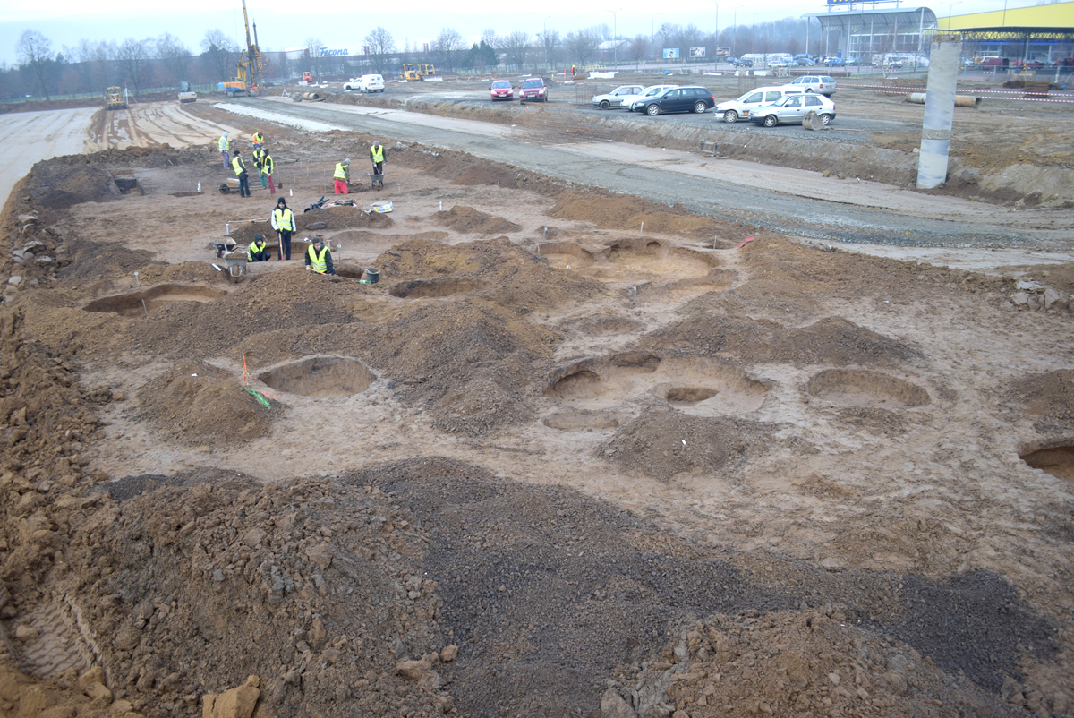 Od listopadu 2014 až do ledna 2015 byl ve Velké Bystřici na ploše stavby společnosti EGT prováděn archeologický dohled a záchranný archeologický výzkum. Nejprve dohled spojený s detektorovým průzkumem těžené orniční vrstvy přinesl poznatky spíše o novověkých zemědělských aktivitách. Mezi kovovými artefakty byly ovšem identifikovány i předměty, které lze ztotožnit s historicky dobře známou kapitolou z konce druhé světové války, kdy byl v prostoru mezi Velkou Bystřicí a Olomoucí sestřelen spojenecký bombardér Boeing B-17G (18. 12. 1944). Této události lze přisoudit části dvou nábojnic z palubních kanónů německé stíhačky FW–190 a nejspíš i část plechu z křídla bombardéru.