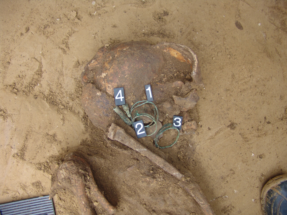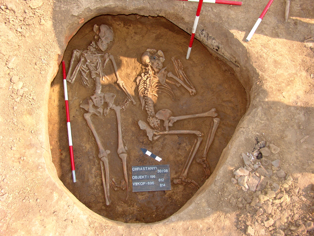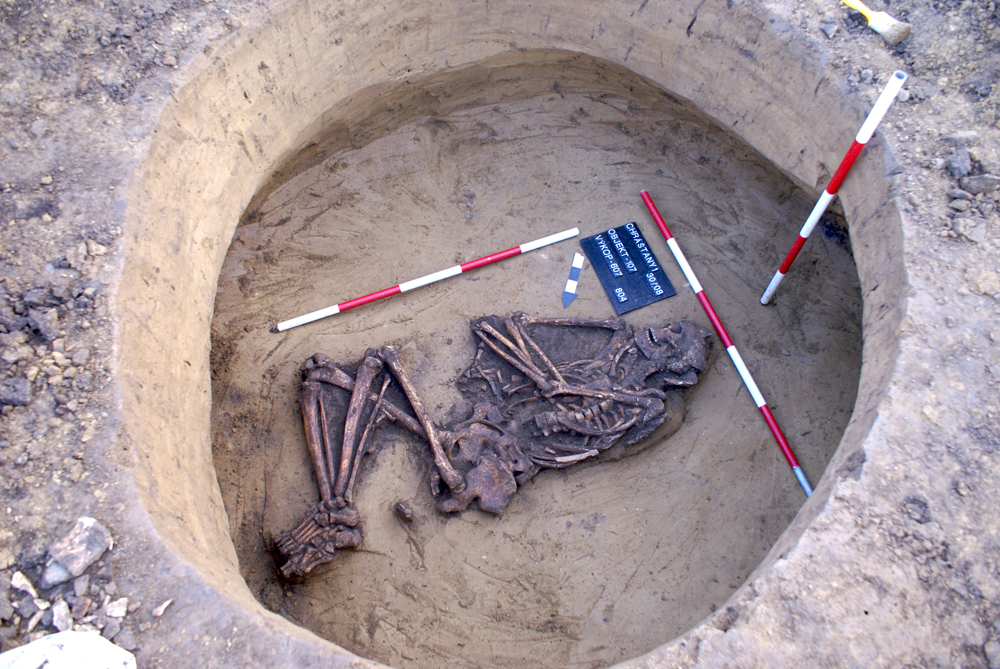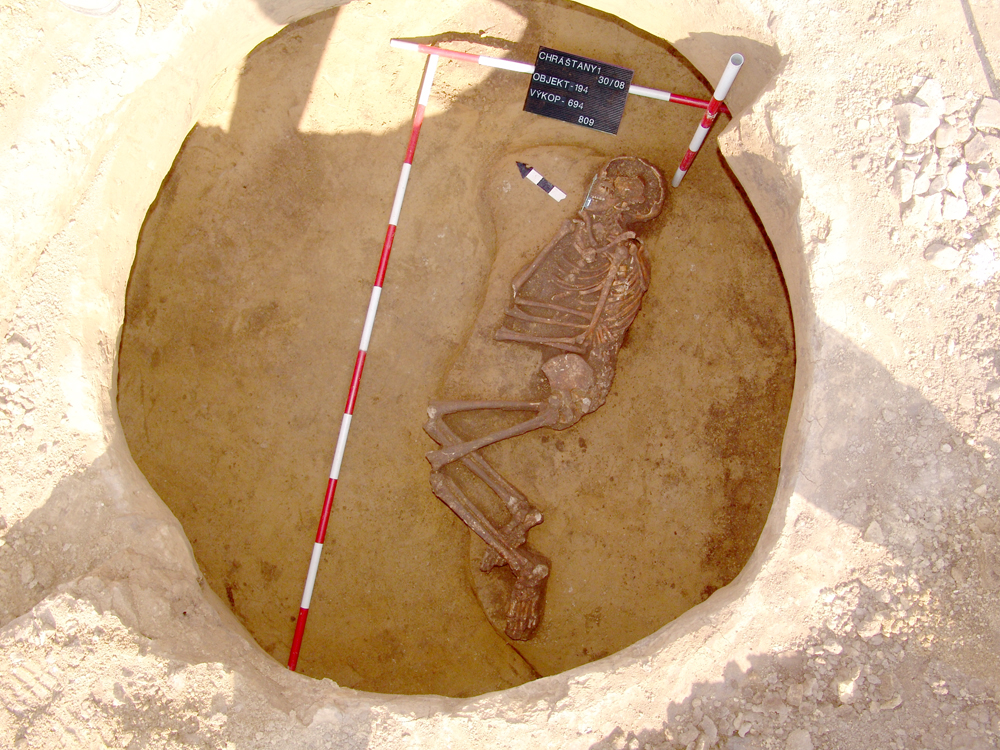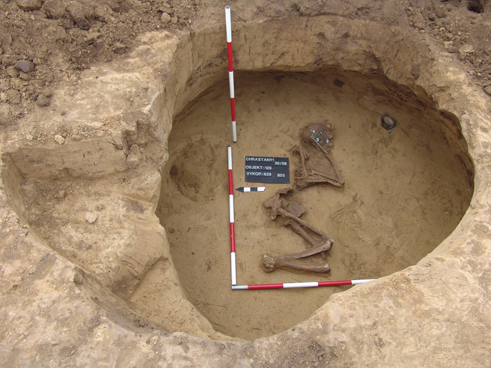 V 16 sídlištních jamách bylo nalezeno 21 lidských koster. Pohřby byli jednočetné (11 jam) a dvou četné (5 jam). Dále se na lokalitě nalezly dva hroby (KŠK), ale pouze v jednom se dochovaly nepatrné zlomky lidských kostí.