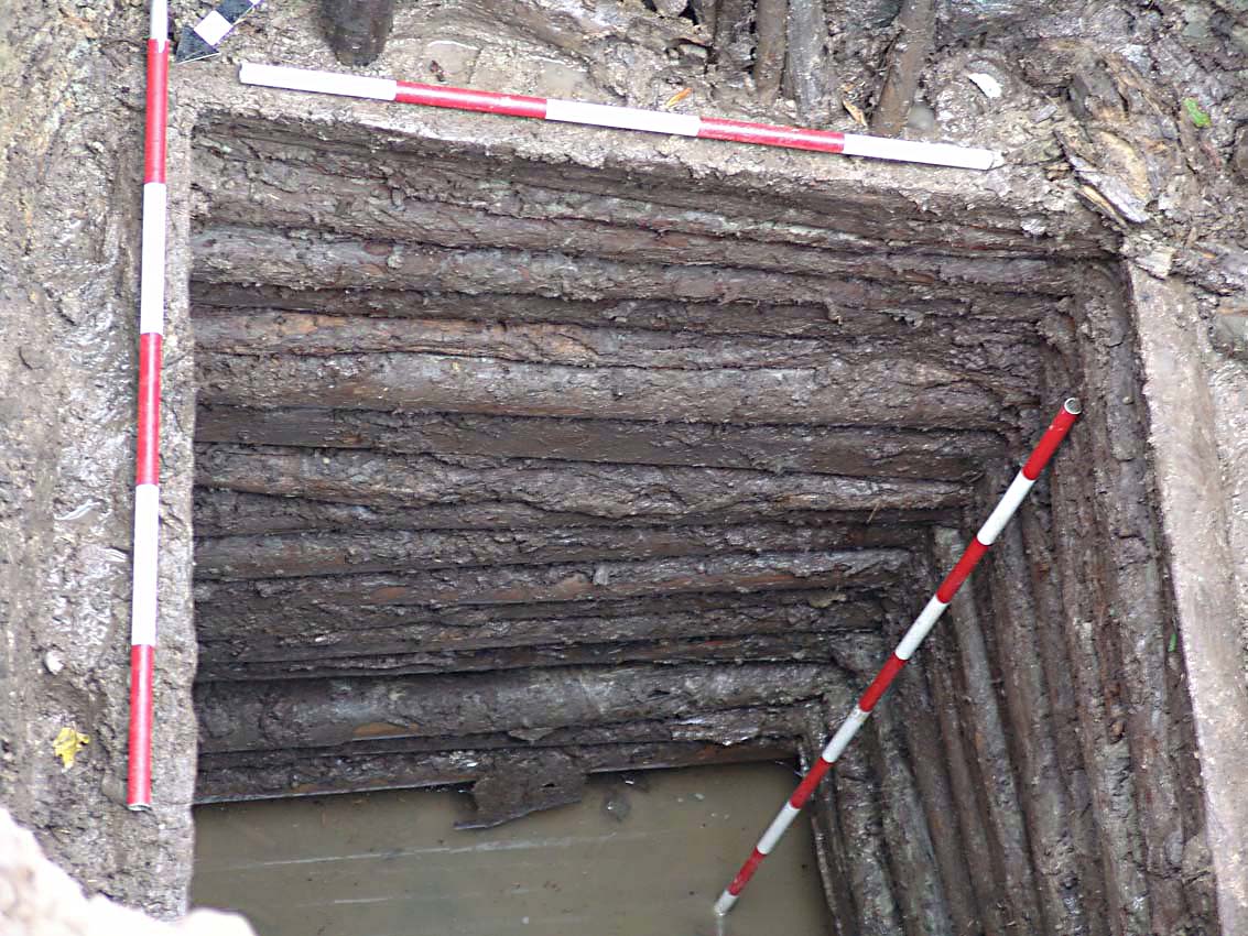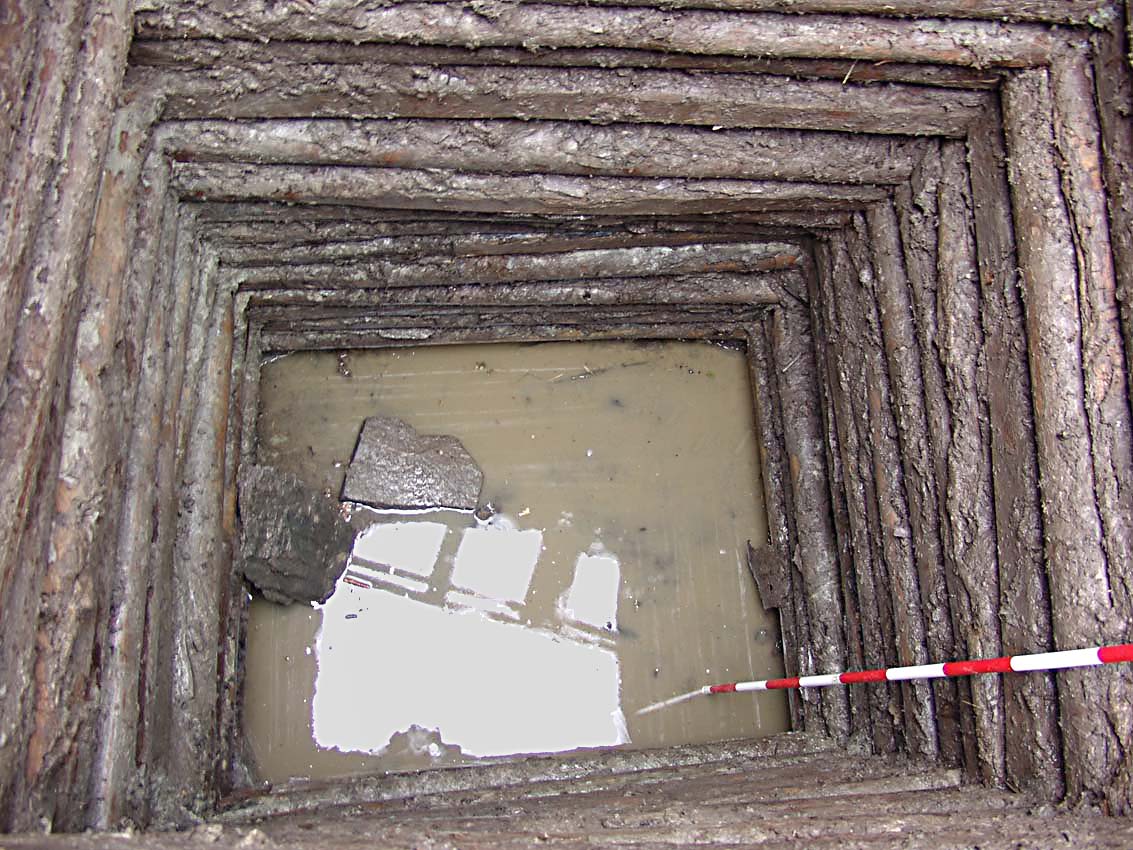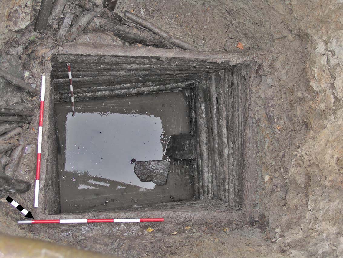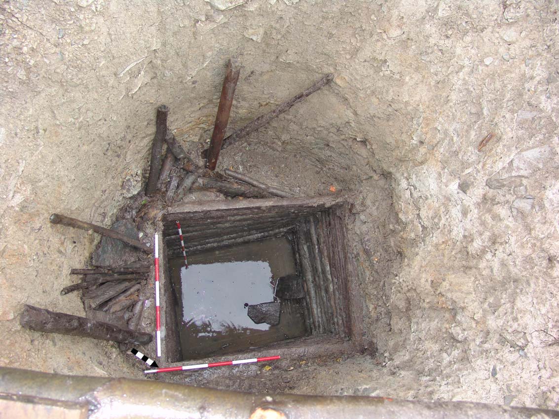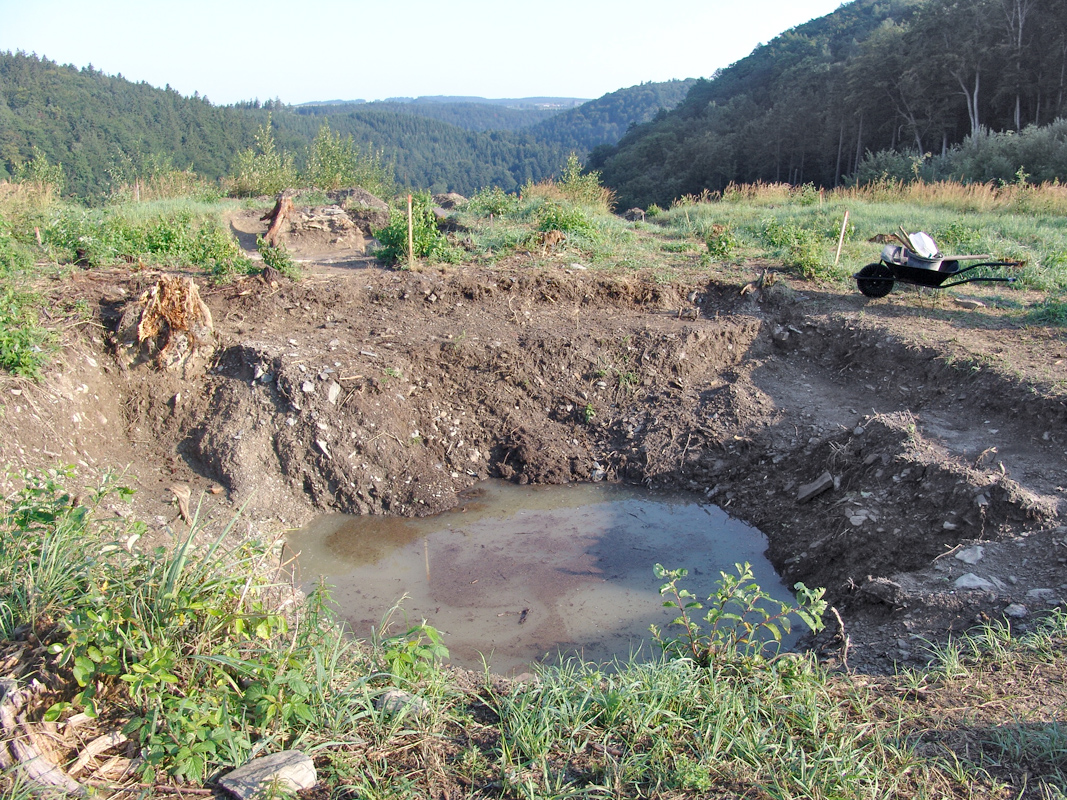 Třetí prohloubenina přinesla poměrně překvapivý objev – s největší pravděpodobností se totiž jedná o středověkou cisternu. Její horní část se nálevkovitě zužuje z cca 5 metrů na 3 metry. V současné době máme vykopány zhruba 3,5 metru a zdá se, že nejsme zdaleka na dně. Cisterna je vyplněna šedým bahnitým zásypem a neustále do ní pomalu prosakuje voda. Zajímavé je také to, že ačkoli v okolí několika metrů od cisterny vystupuje rostlá skála již v hloubce zhruba 2,5 metru od dnešního povrchu, cisterna je zahloubena do jílu. V zásypu cisterny je poměrně hojně zastoupena keramika ze 14. století a Fe struska.