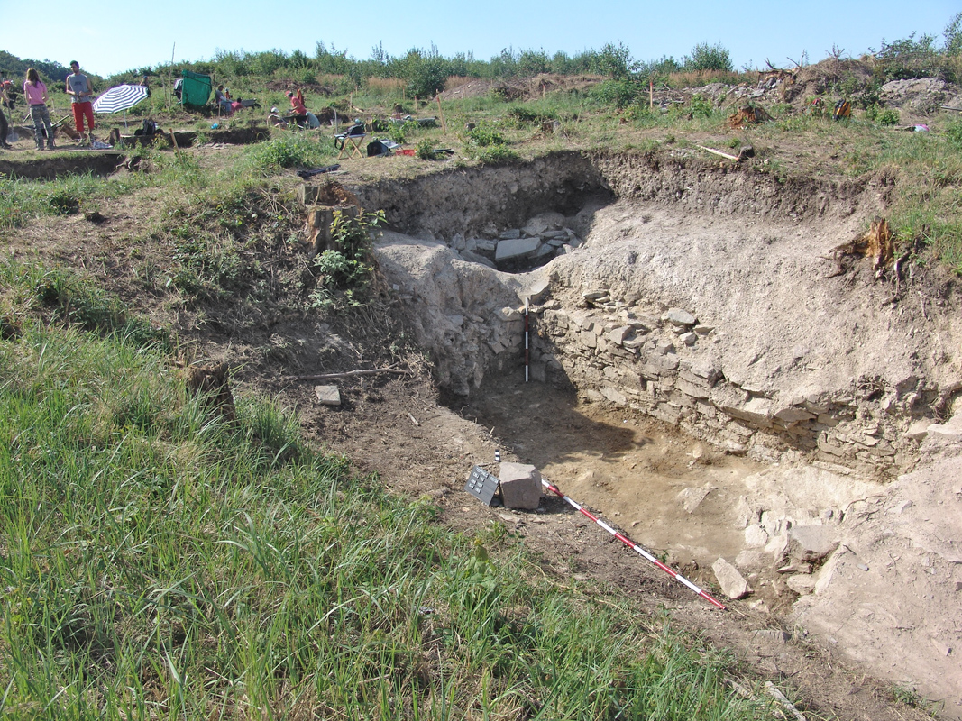 Během probíhajícího výzkumu jsme zjistili, že dvě z prohloubenin představují relikty středověkých sklepů či suterénů nadzemních staveb. Oba sklepy jsou částečně zasekány do rostlé skály a jejich stěny jsou postaveny z lomového kamene spojeného pouze jílem či hlínou. Rozměry sklepů jsou 4,5×4 metry a 5×5 metrů. V jednom ze sklepů byla na dně nalezena horní část žernovu (běhoun) se středovým otvorem a dvěma bočními otvory pro uchycení patrně dřevěné hnací rukojeti.