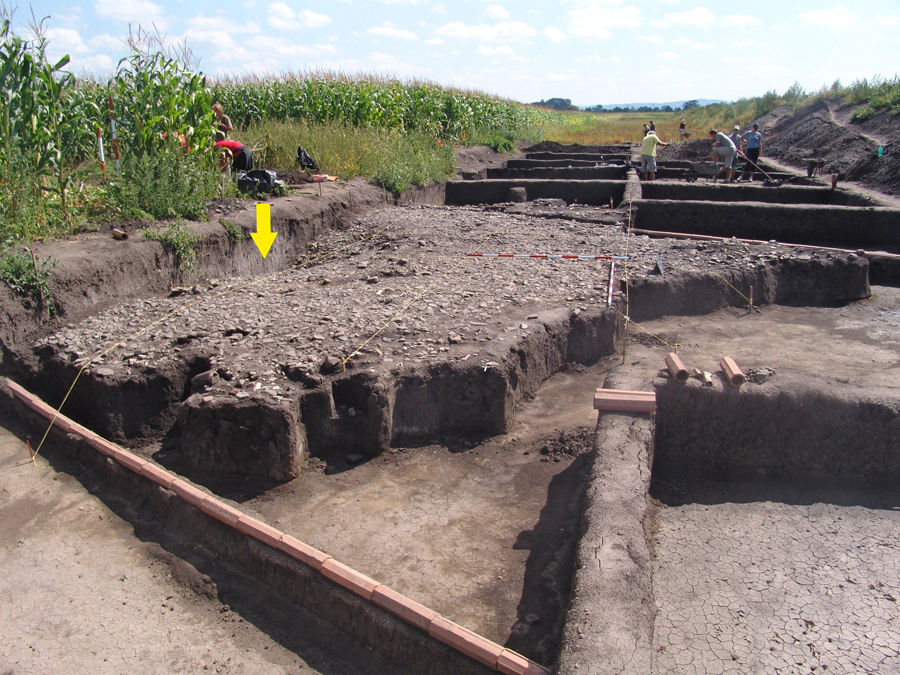 Na lokalitě se podařilo také odkrýt poměrně početný soubor sídlištních objektů, většinou jam střední velikosti o hloubce do 1,40 m od úrovně terénu, což bylo zřejmě dáno hladinou spodní vody.