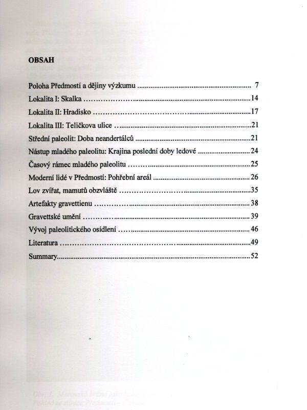 Publikace o známém paleolitickém nalezišti v Přerově-Předmostíé obsahuje 55 stran textu, 31 čb. a barevných obrázků. Anglické resumé. Cena: 10,- Kč včetně DPH (studenti také)