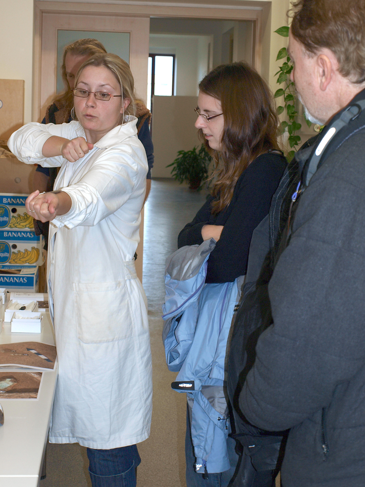 Po 9. hodině se do nedávno zrekonstruované budovy začali trousit první zájemci. Jejich cílem bylo nejen podívat se za ty pověstné "dveře", ale také se něco dozvědět o naší činnosti a archeologii vůbec. Nebylo jich mnoho (asi 25 zájemců), ale všichni byli velmi všímaví a kladli řadu všetečných otázek. Prohlídka budovy s výkladem v případě některých skupinek trvala třeba i 3/4 hodiny. Spokojeni byli pracovníci ACO a doufáme, že i návštěvníci. Ti využili krásné, téměř letní počasí, pro možnost dozvědět se něco nového. Krátkou fotoreportáž si můžete prohlédnout na této stránce. Pracovníci ACO se již těší na další příležitost k setkání s věřejností - na přednáškách - nebo třeba přímo v terénu na archeologických výzkumech.