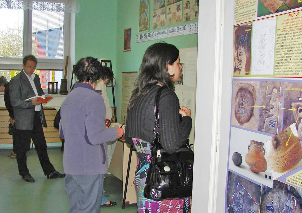 Pro lepší představu byly vitríny s předměty doplněny informačními tabulemi s doprovodnými texty a fotografiemi nálezových situací.