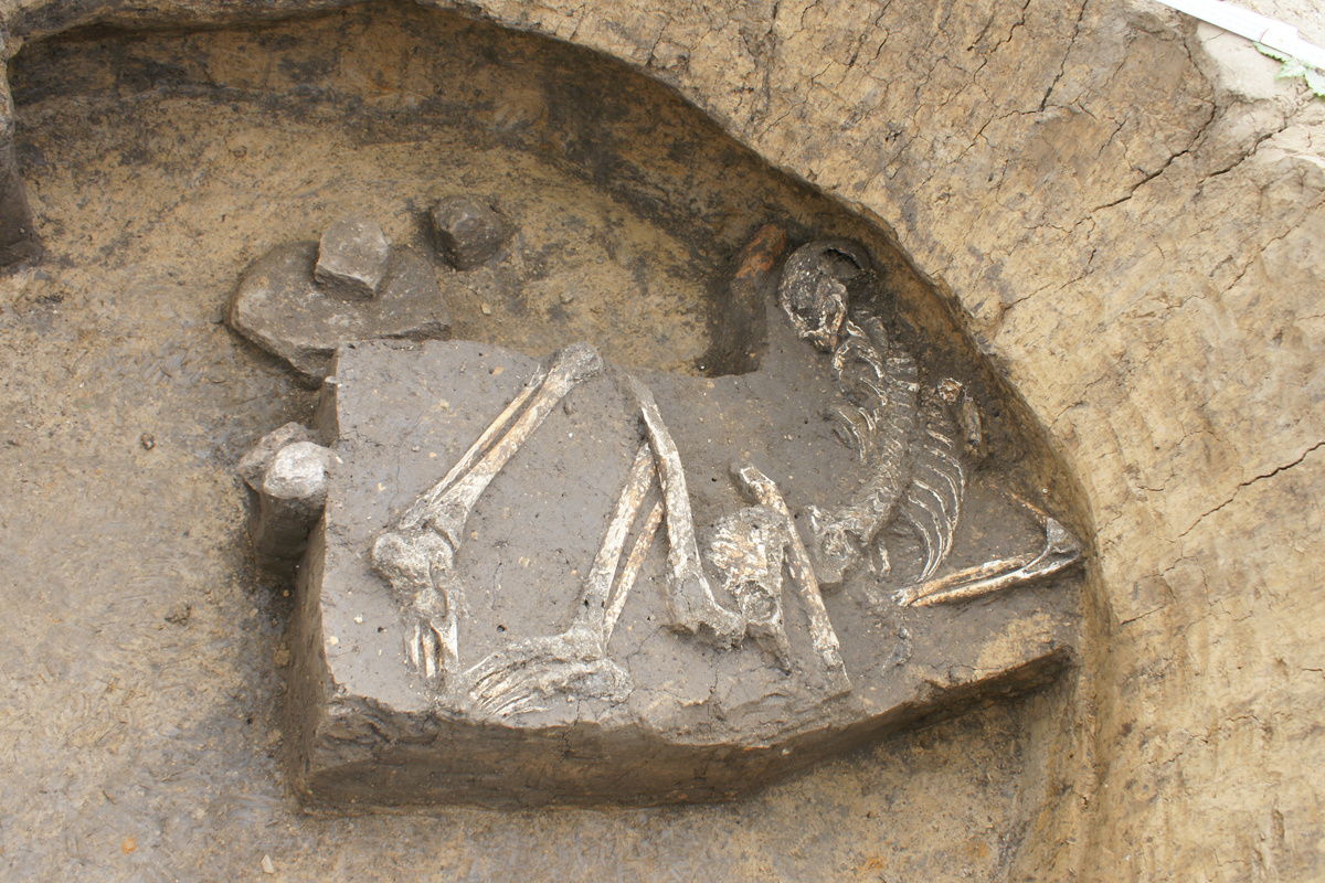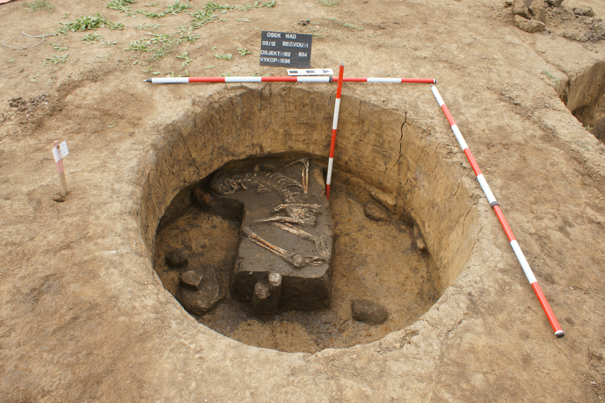 Výzkum starobronzového sídlištního objektu v Oseku nad Bečvou přinesl nález pohřbu dospělého muže uloženého tak, že hlava strupem ležely pod převisem tohoto objektu. Tělo mužovo bylo do jámy ukládáno v několika krocích, pozůstalí zřejmě jeho tělo spouštěli svisle dolů nohama napřed, poté co se obě chodidla a bérce dotkly dna jámy, došlo k flexi kolenních kloubů do polohy vkleče. Následně byl trup s hlavou vtažen pod převis jámy, a to za mužovu levou horní končetinu. Výslednou pohřební polohou těla se stal schoulený klek, kdy se pravá část trupu opírala o stěny jámy.
