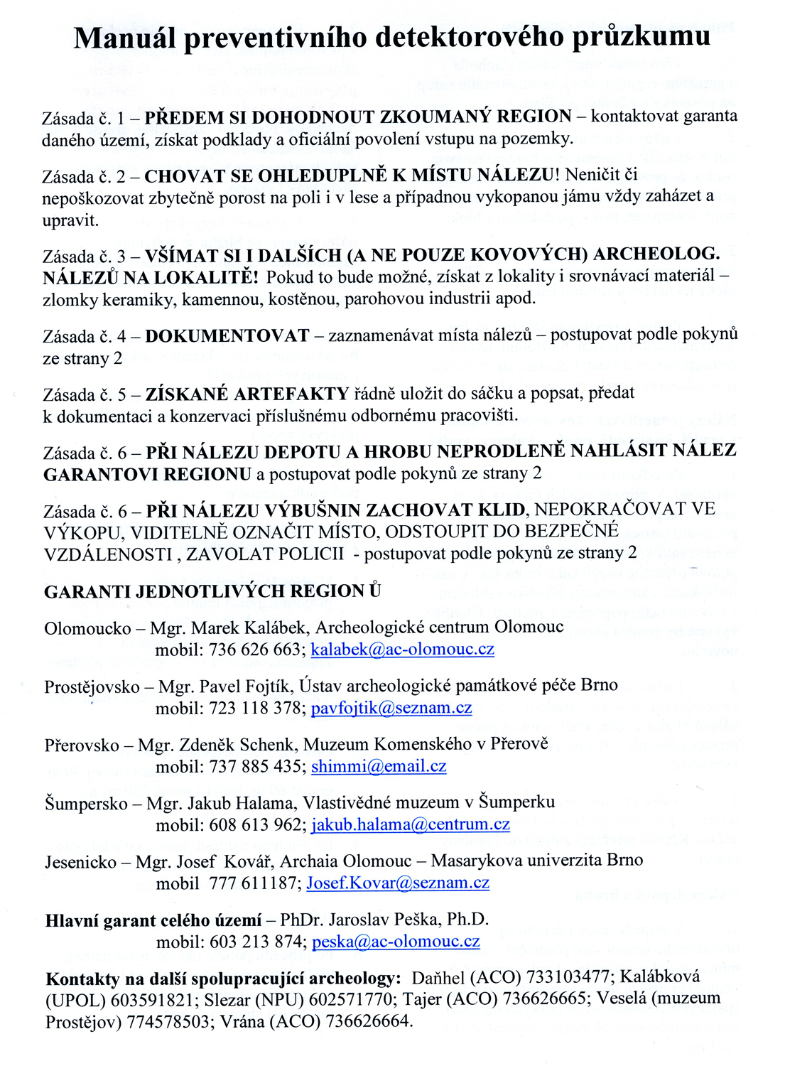 Projekt Preventivní archeologie – Detektory kovů v archeologii v Olomouckém kraji
